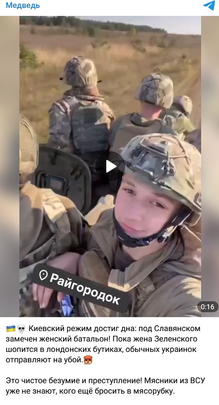 На відео вказано, що події відбуваються у селищі Райгородок. Воно справді знаходиться у Донецькій області поблизу Слов’янська. Та й в Україні дійсно є окремі жіночі підрозділи. Наприклад, у складі Сил безпілотних систем діє жіночий підрозділ «Гарпії». Або ж у Київській області працює мобільна група ППО «Бучанські відьми», яка складається переважно з жінок.