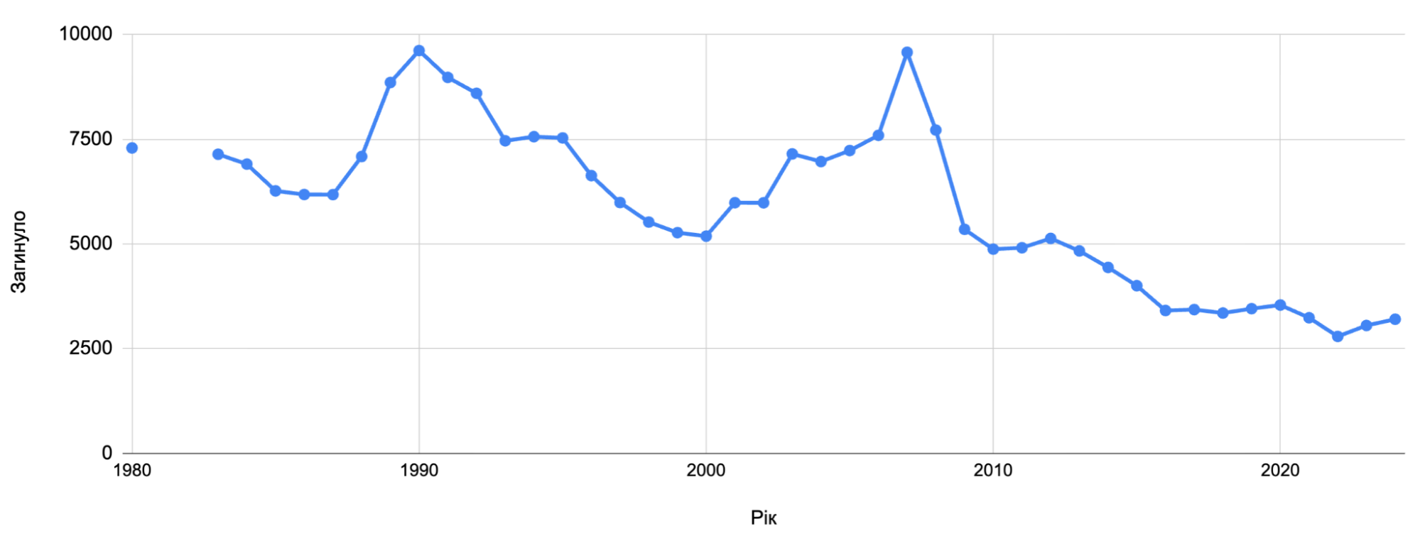 Рисунок 1. Кількість смертей в ДТП на рік, Україна