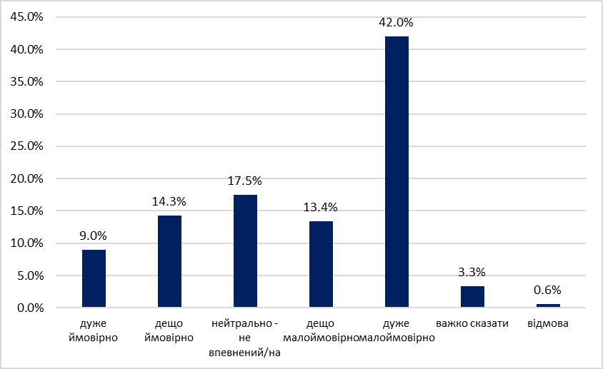 Рисунок 1. Наскільки ймовірно, що ви скористаєтеся ШІ-чатботом для підтримки психічного здоров’я, якщо потребуватимете допомоги?