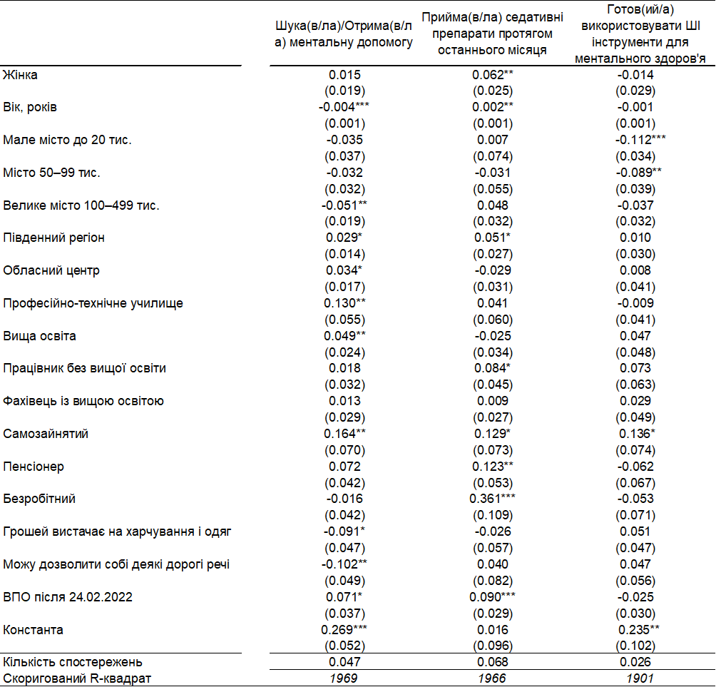 Таблиця A1. Результати лінійних ймовірнісних моделей для респондентів, які зверталися за або отримували допомогу у сфері психічного здоров’я