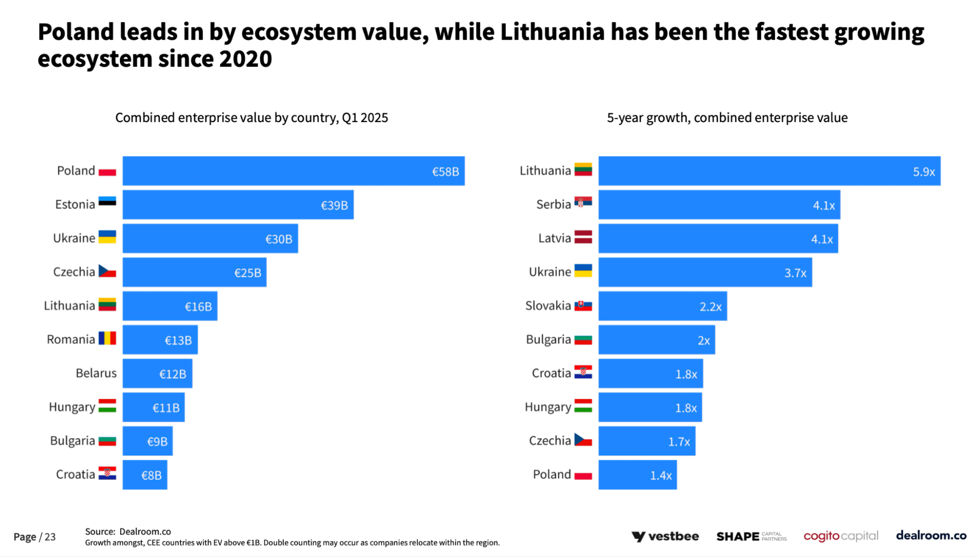Despite the slowdown and largely due to military innovation, Ukraine’s startup ecosystem is very dynamic. Ukraine has four cities in the global top 1000 entrepreneurial city ranking, although every city except the capital, Kyiv, is experiencing a decline in 2025. Despite that, Ukraine continues to climb in Eastern Europe Global Startup Ecosystem Ranking, moving up one spot to reach 8th place, overtaking Romania. Ukraine ranks second in Eastern Europe and 17th globally in the SaaS industry.