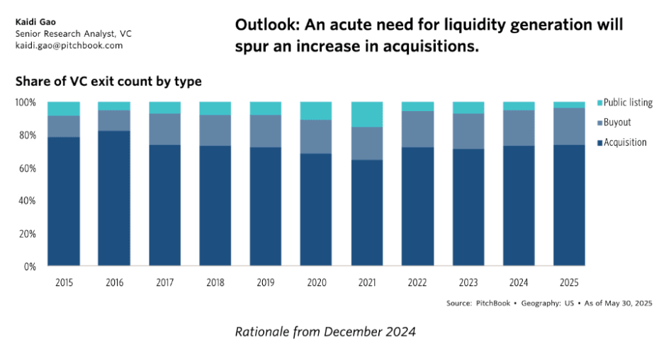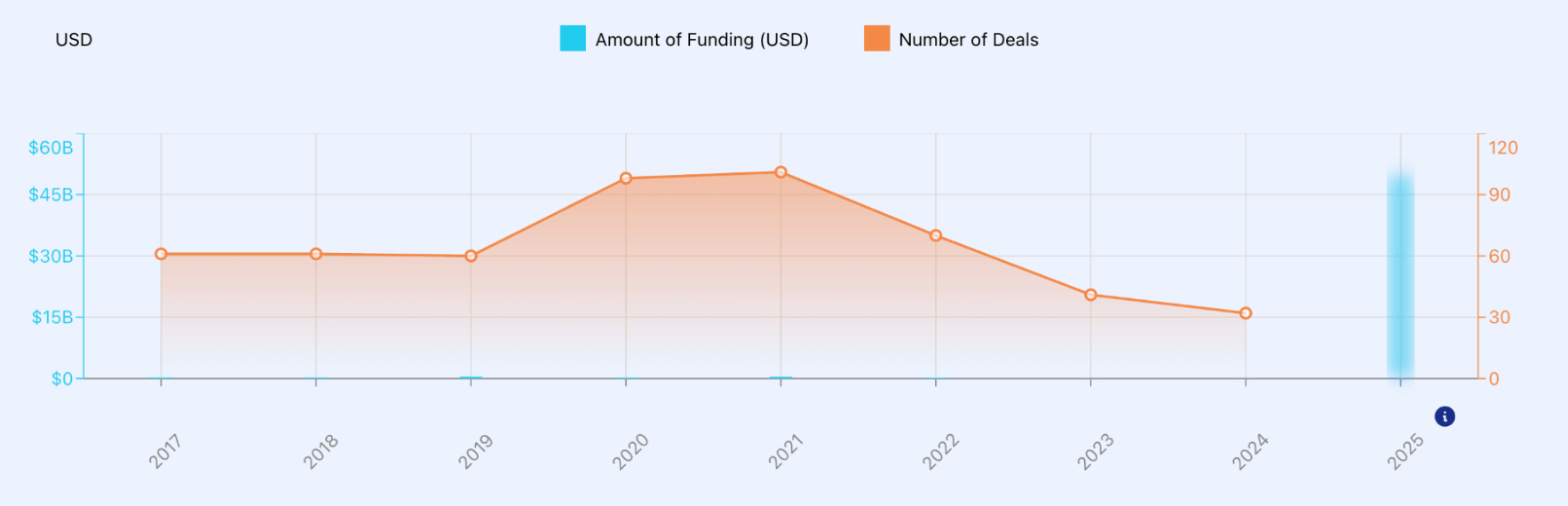 After 2021, the amount of IPO listing also declined (figure 2), as market conditions made public offerings less attractive for many companies. Overall, these shifts mark a clear turning point in the investment landscape after 2021. Now the market starts to recover, but it is still unclear when the US ecosystem will reach its prior record levels.