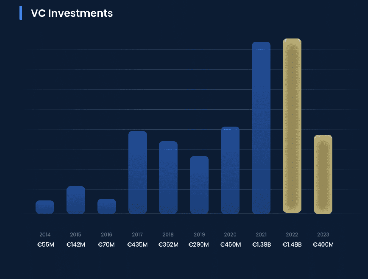 Global capital markets have been in decline since 2021, except Estonia, where decline started in 2022. The decline is the result of a market overheating, increased interest rate, and COVID-19 pandemic. This shift could signal a new trend — a general market shift to earlier stage investment, which is typically smaller. This could be attributed to the fact that for the first time in history, due to AI innovations and increased quality of talent, small teams could build large companies with smaller budgets.