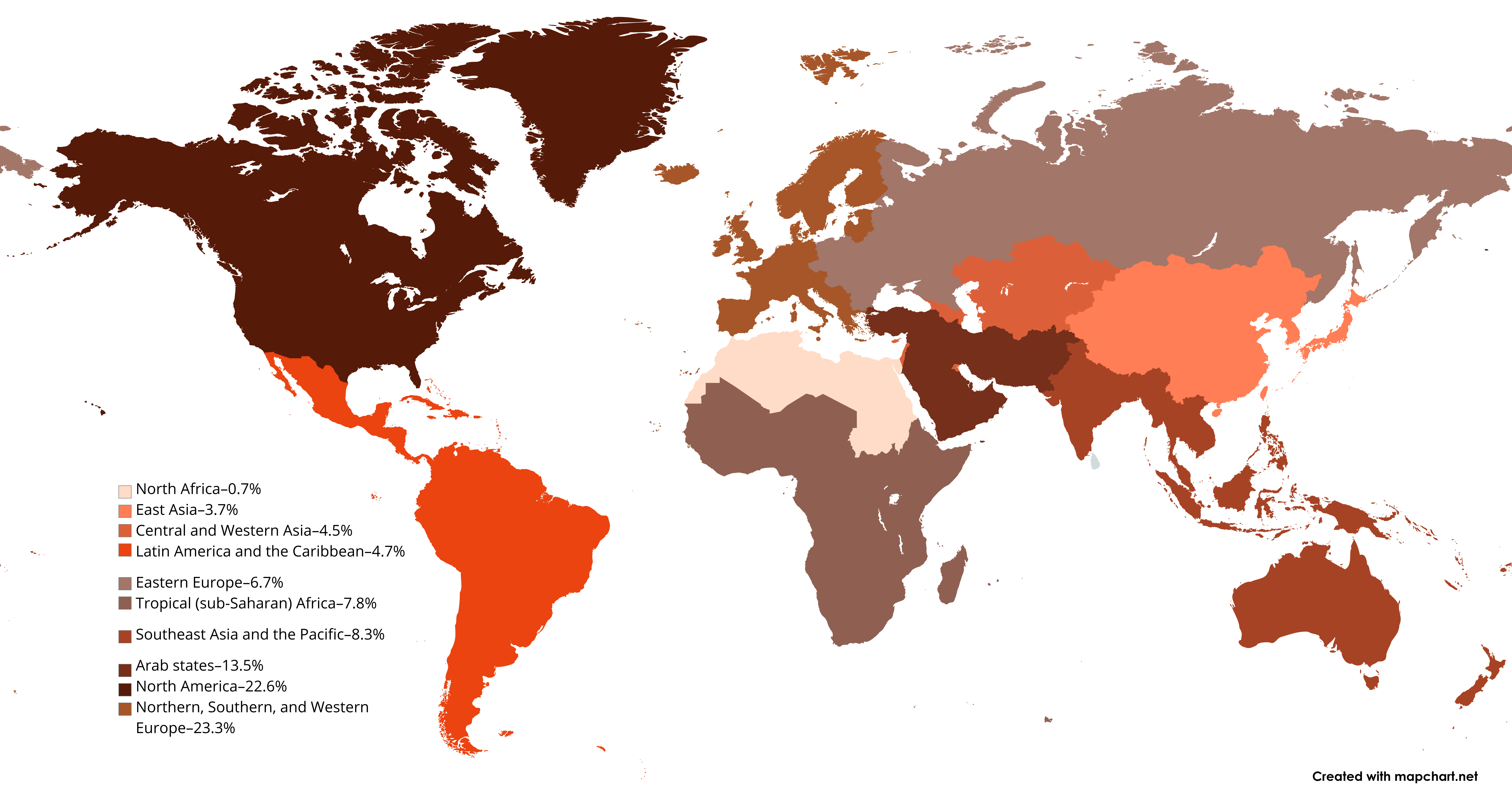 Figure 2. Regional distribution of labor migrants worldwide as of 2022