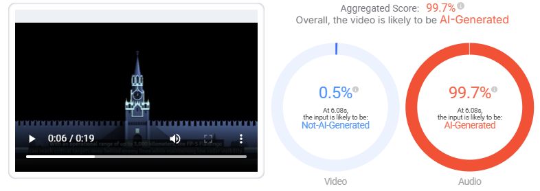 Перевірка у Hive Moderation показала, що аудіодоріжку до відео з високою ймовірністю згенерували за допомогою ШІ.