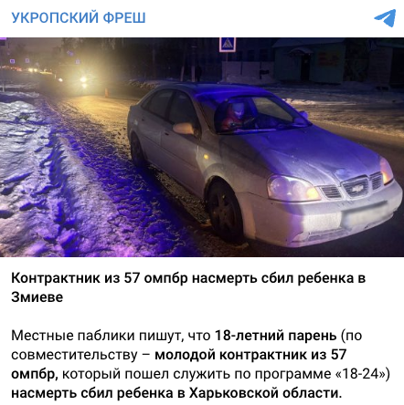 ФЕЙК: На Харківщині військовий 57-ї ОМПБр на смерть збив дитину — медіа