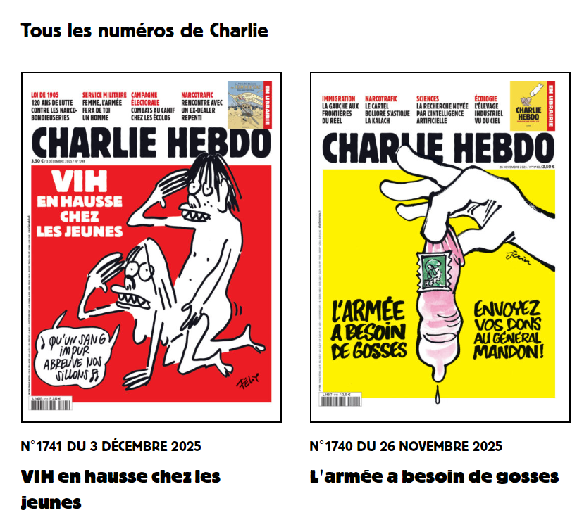 Останні випуски Charlie Hebdo наприкінці листопада — на початку грудня 2025 року