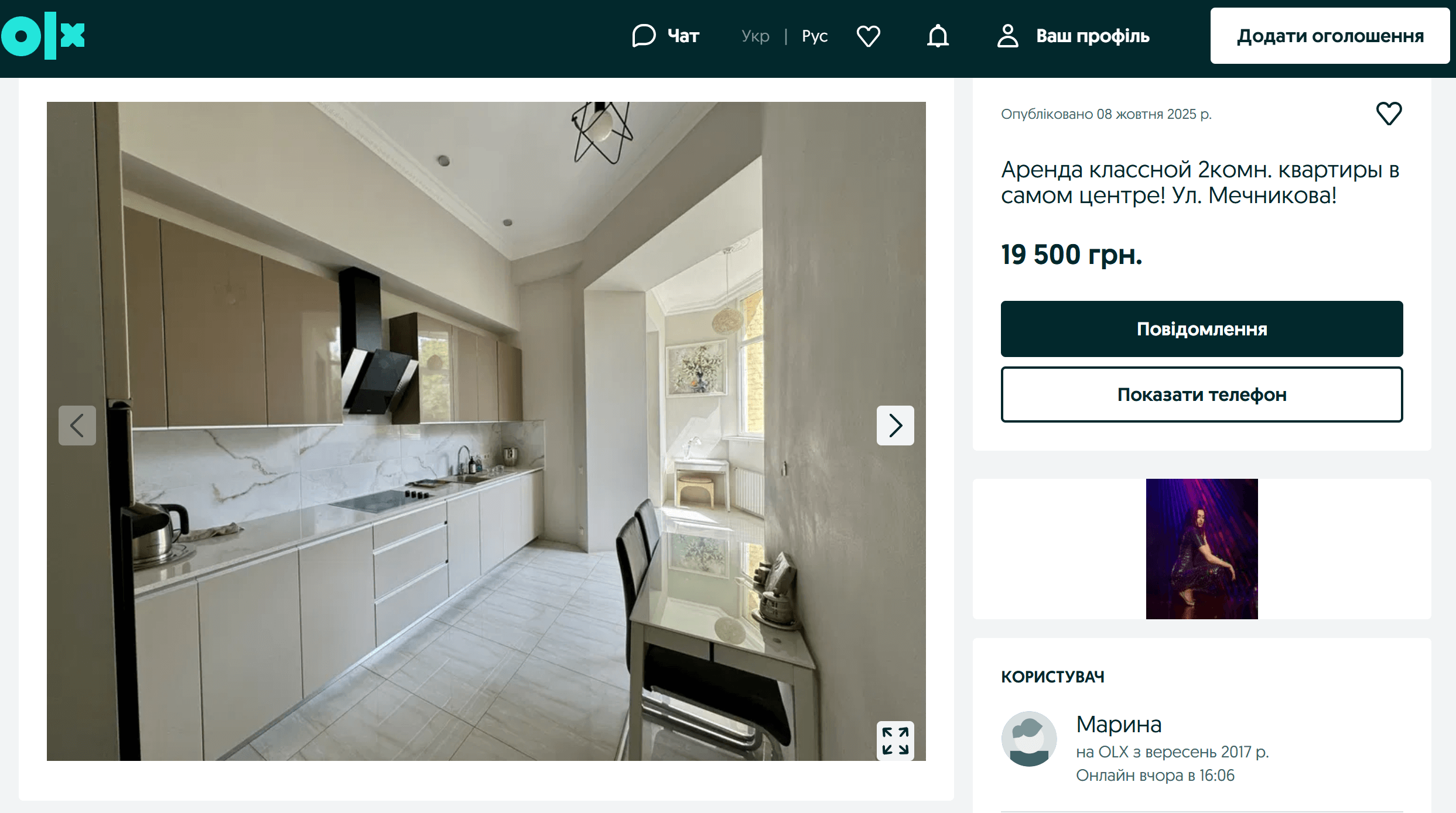 Скриншот оголошення про оренду квартири у Дніпрі, фото якої поширили пропагандисти. Джерело: OLX