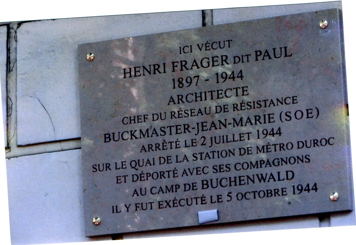 Фото меморіальної дошки на будинку. Джерело: Musée de la Résistance en ligne
