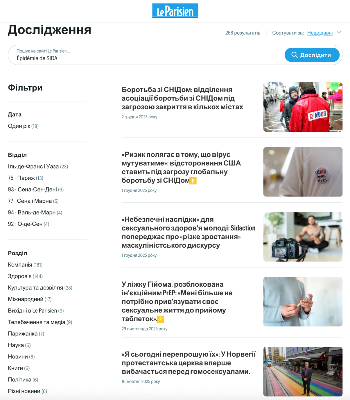 Результати пошуку за запитом «Épidémie de SIDA» («Епідемія СНІДу») на сайті Le Parisien (автоматичний переклад)