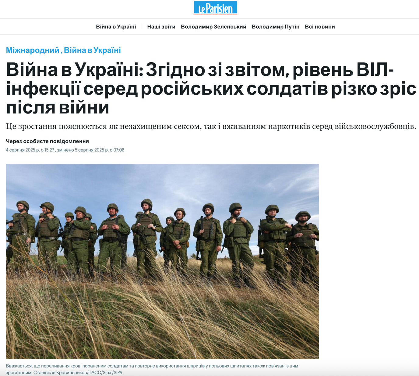 Натомість у серпні 2025 року Le Parisien з посиланням на звіт аналітичного центру Carnegie Politika повідомляла про масштабне зростання рівня ВІЛ-інфекції серед російських військових з початку повномасштабного вторгнення.