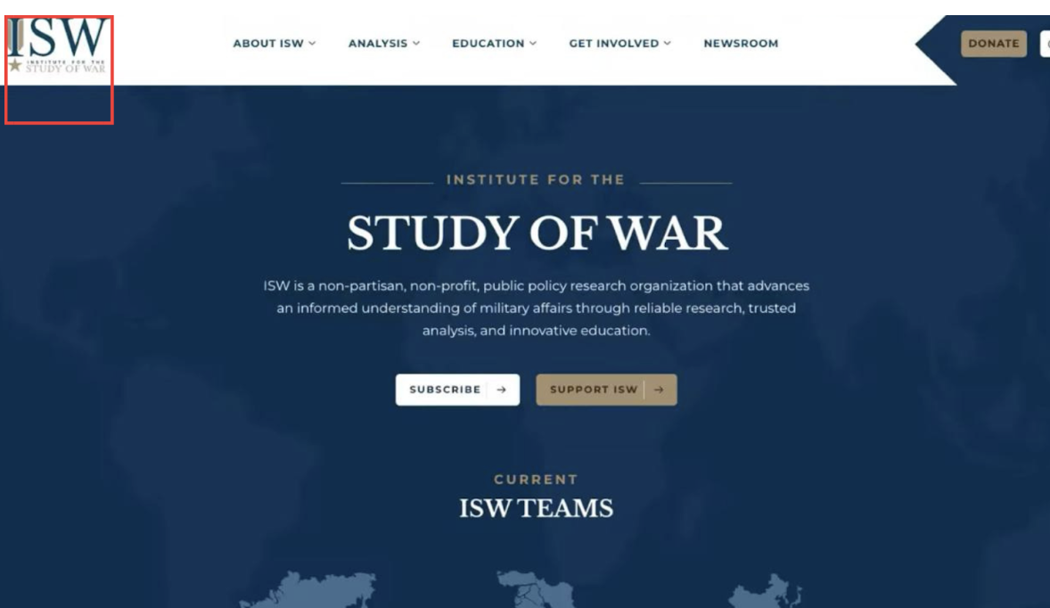 Скриншот з сайту ISW зі стандартним та офіційним лого