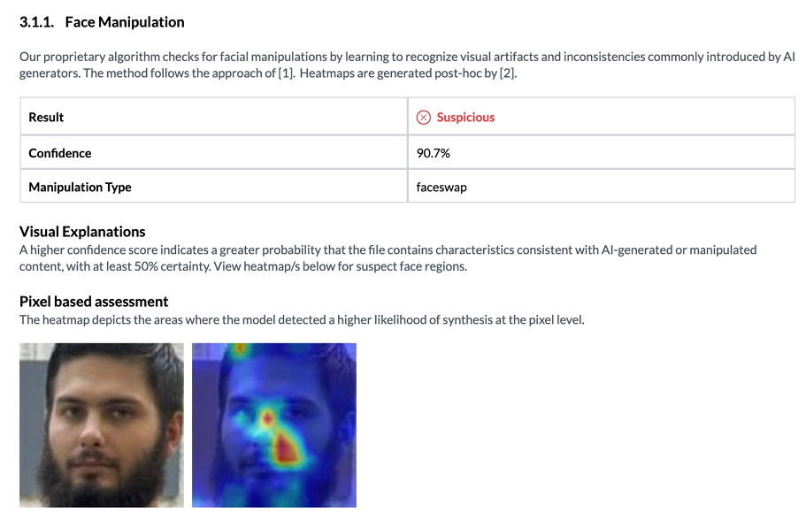 Скриншот перевірки Sensity.AI