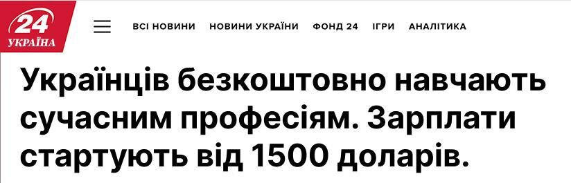 На сайті і у соцмережах «24 каналу» немає статті із заголовком про навчання нових професій, яка гарантує стартовий заробіток у $1500.