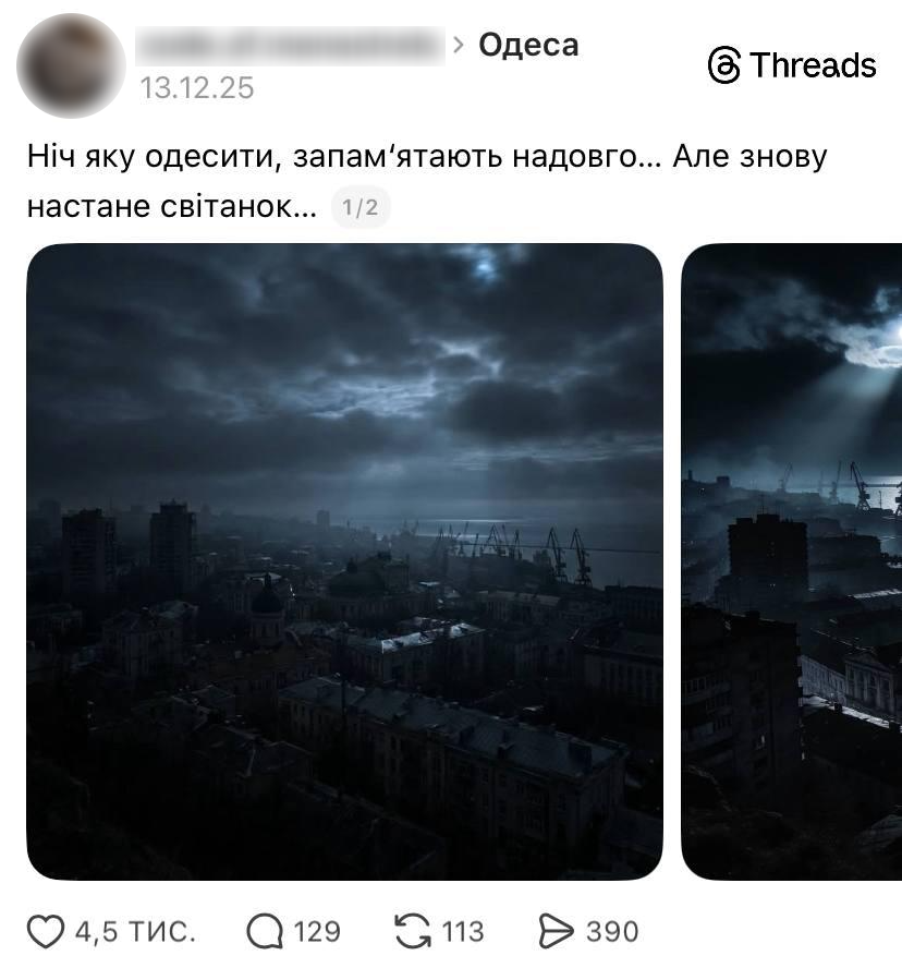 ФОТОФЕЙК: Фото блекауту в Одесі після обстрілу рф у грудні 2025 року