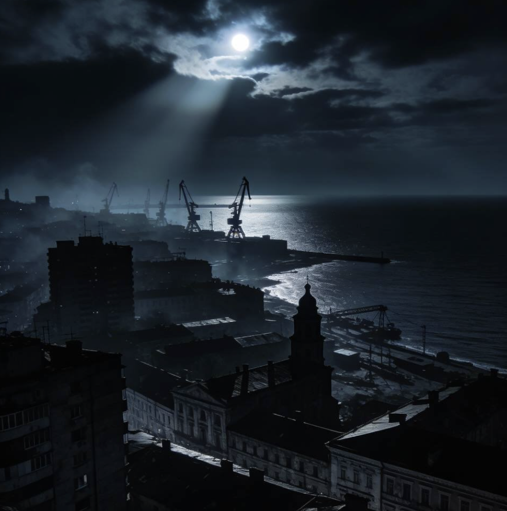 Це характерна риса генеративних моделей: ШІ формує зображення так, щоб воно виглядало правдоподібним, а не відповідало реальній логіці розташування об’єктів. Тобто модель не перевіряє, чи існують ці конкретні будівлі або пірси в Одесі — вона просто створює впізнаваний образ нічного портового міста.