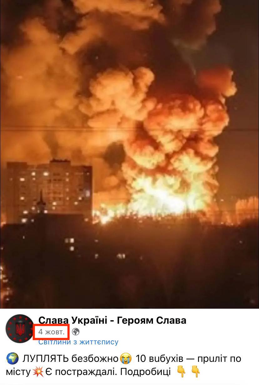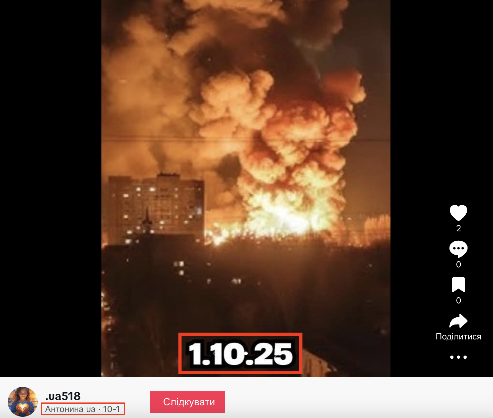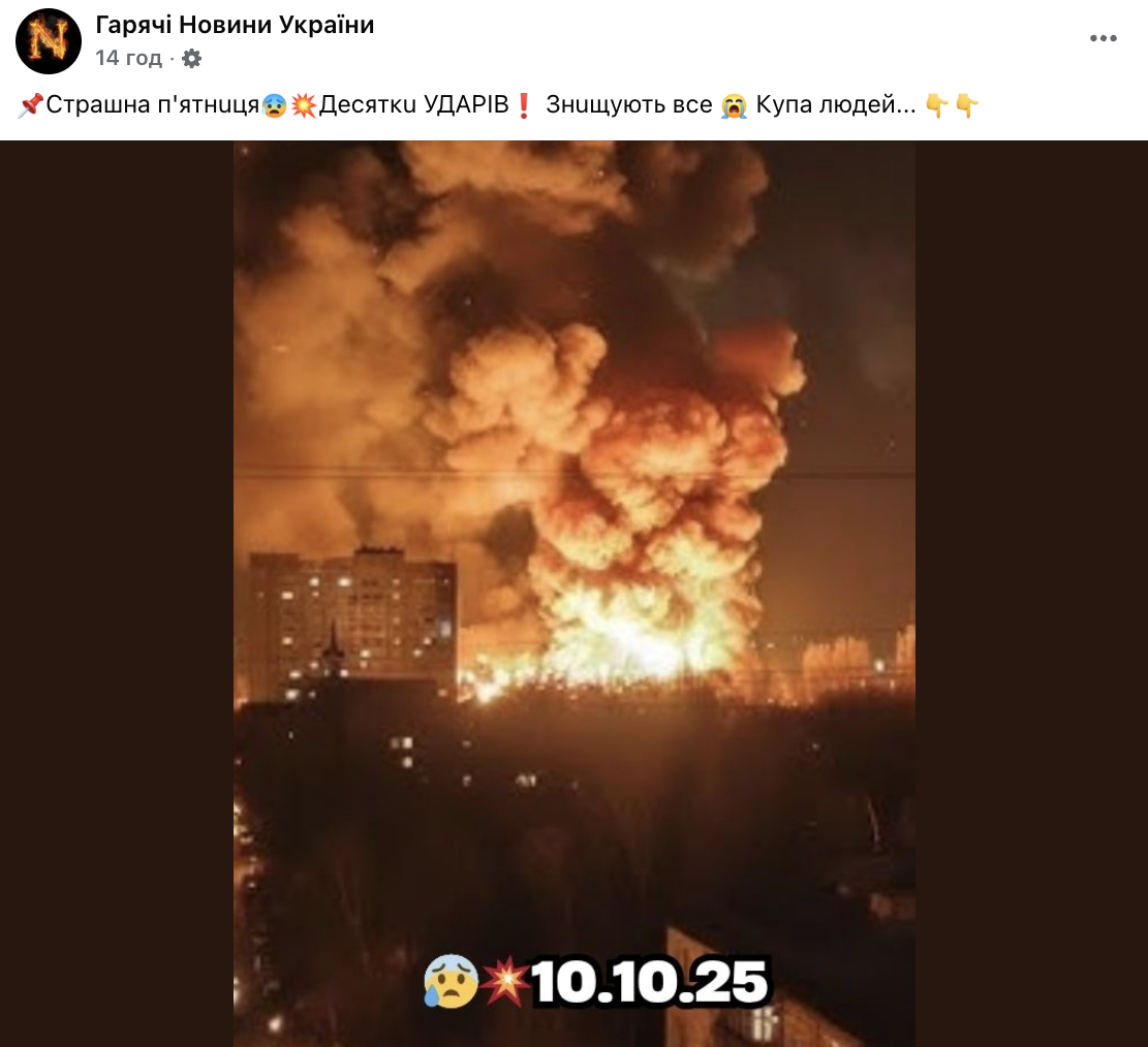 10 жовтня 2025 року у мережі поширили фото нібито пожежі після масованого обстрілу росією 10 жовтня 2025 року.