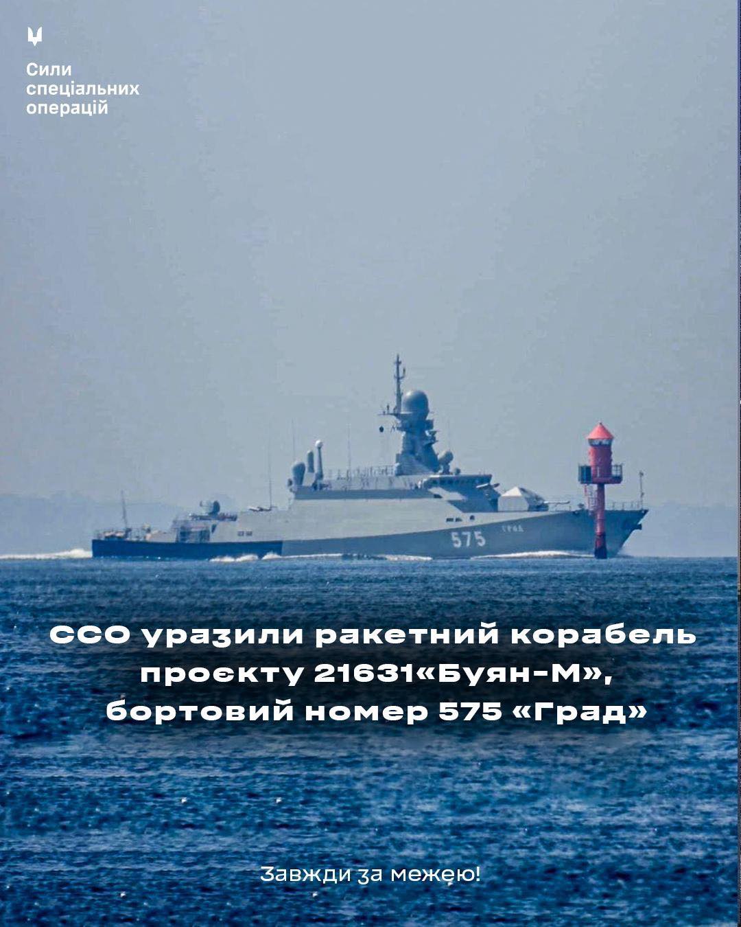 Справжнє фото російського ракетного корабля «Град», яке опублікували ССО