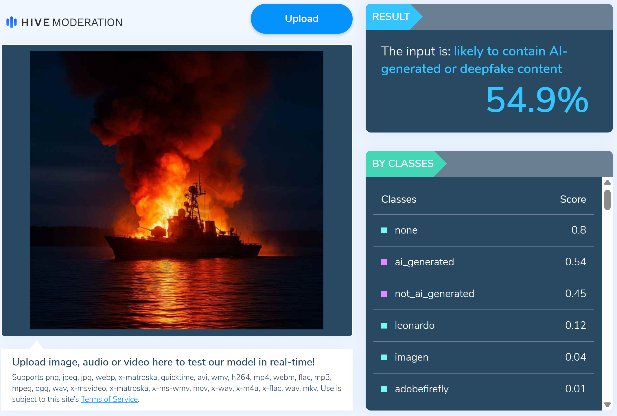 Результат перевірки в інструменті Hive Moderation
