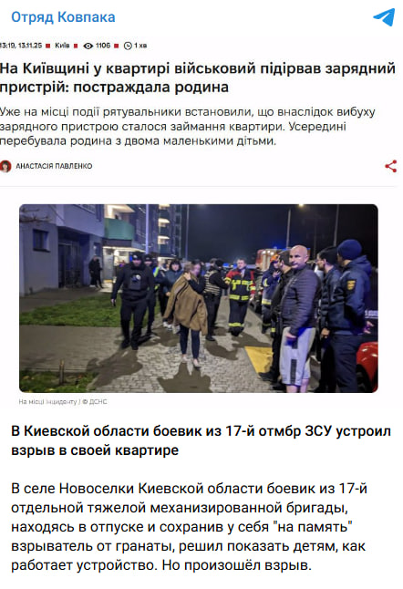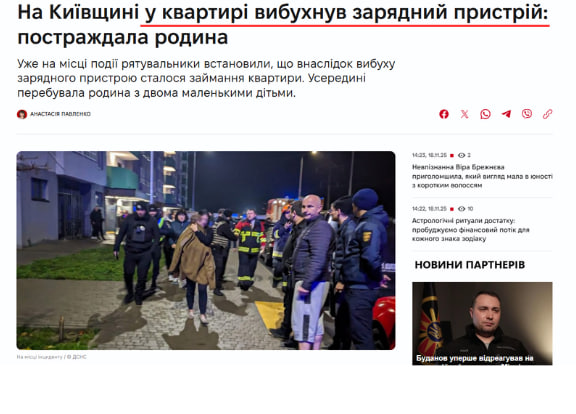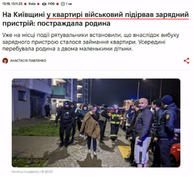 У матеріалі із посиланням на інформацію від ДСНС повідомили, що на Київщині через вибух зарядного пристрою у квартирі постраждала родина з двома дітьми. Однак ані у статті «ТСН», ані у дописі ДСНС не заявляли, що вибух стався через гранату. Також там не було жодних згадок про військового 17-ї ОВМБр, через якого нібито стався інцидент.
