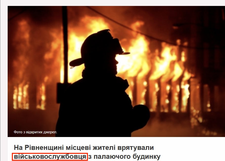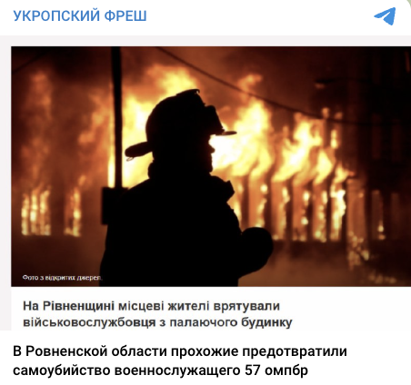 У мережі поширюють інформацію, нібито на Рівненщині перехожі врятували військового 57-ї окремої мотопіхотної бригади від самогубства. Мовляв, чоловік влаштував підпал власного будинку через пережитий стрес.