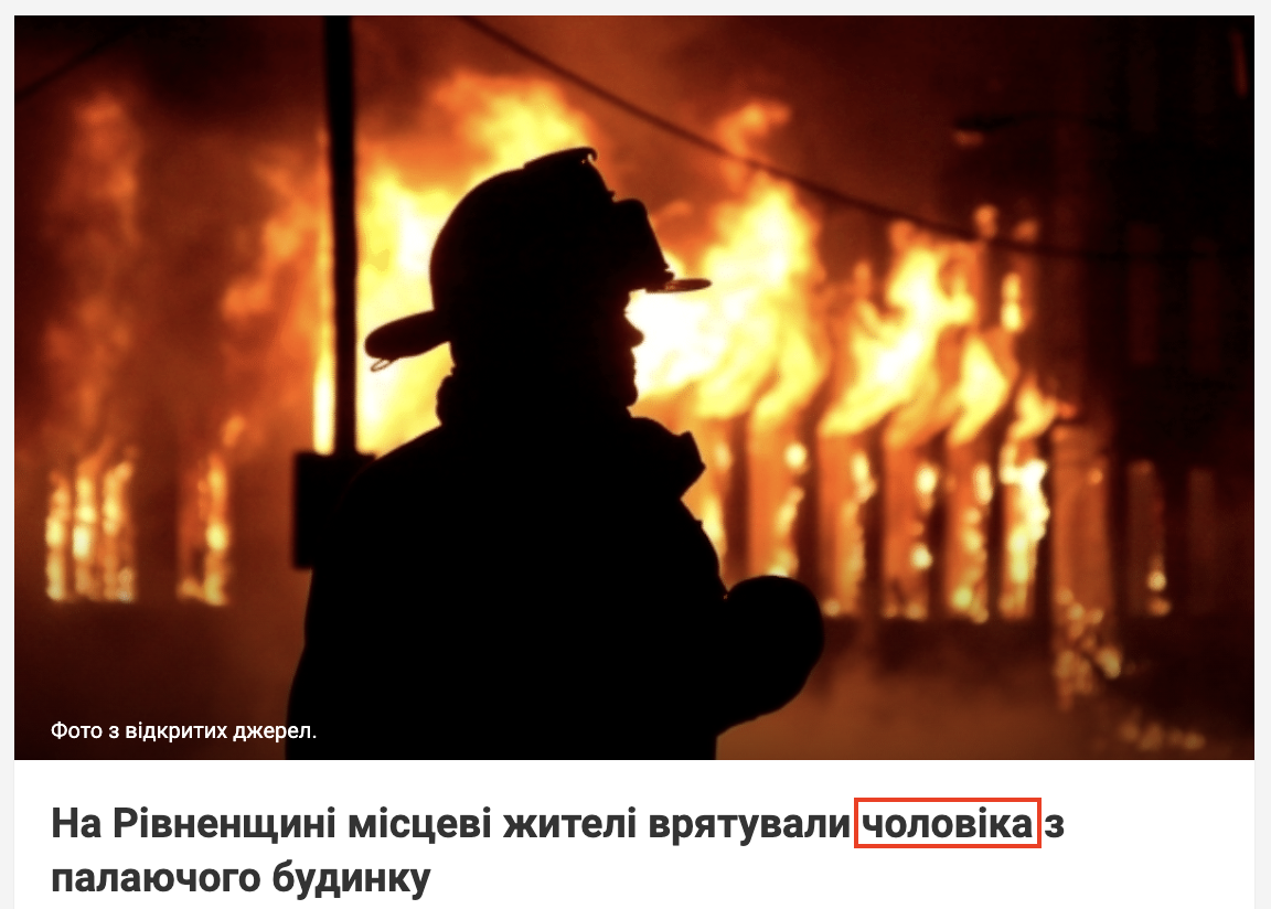 Імовірно, пропагандисти відредагували заголовок новини у фоторедакторі або за допомогою редагування коду сторінки: слово «чоловіка» замінили на «військовослужбовця».