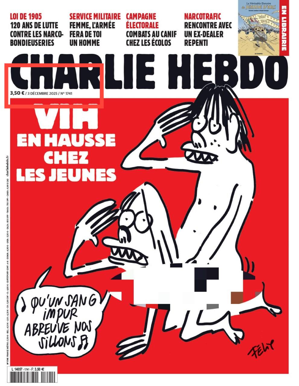 Однак це фотофейк. Charlie Hebdo не публікував цю обкладинку. На момент публікації фейку (13 листопада 2025 року) випуску №1741 ще не було.