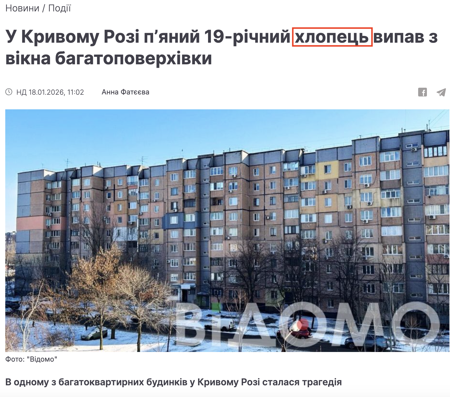 Імовірно, пропагандисти відредагували заголовок новини у фоторедакторі або за допомогою редагування коду сторінки: слово «хлопець» замінили на «військовослужбовець».