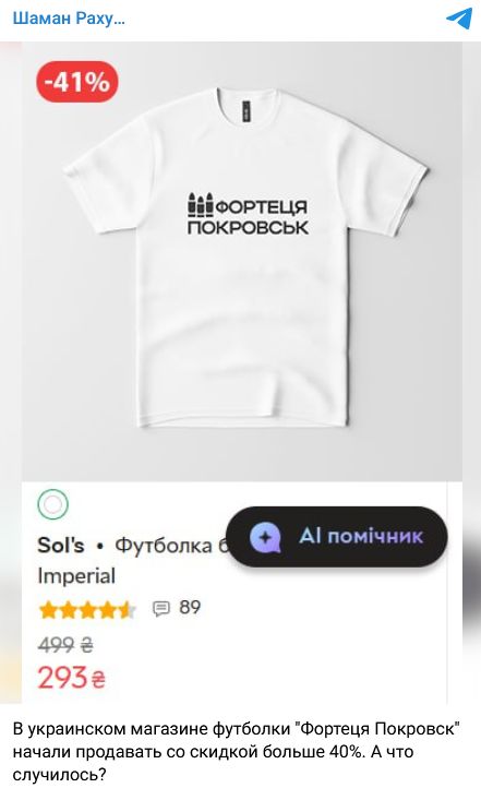 У мережі поширюють інформацію, начебто бренд одягу Sol’s продає футболки з написом «Фортеця Покровськ» зі знижкою у 41%.