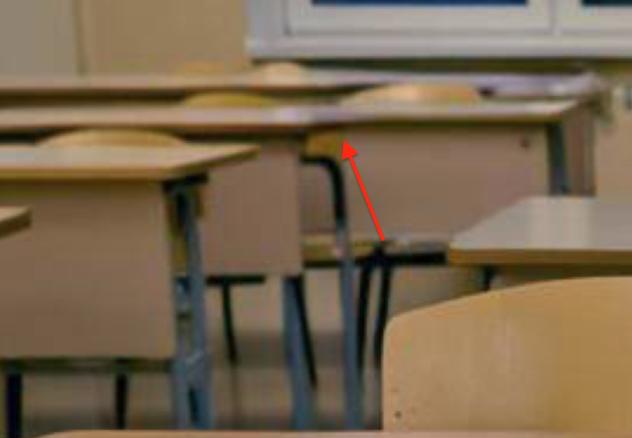 На зображенні також можна помітити певні ШІ-артефакти, які видають підробку. Наприклад, парти в кінці класу зліва зливаються в одну, а тіні на голові й обличчі вчительки не узгоджуються з загальним освітленням приміщення.