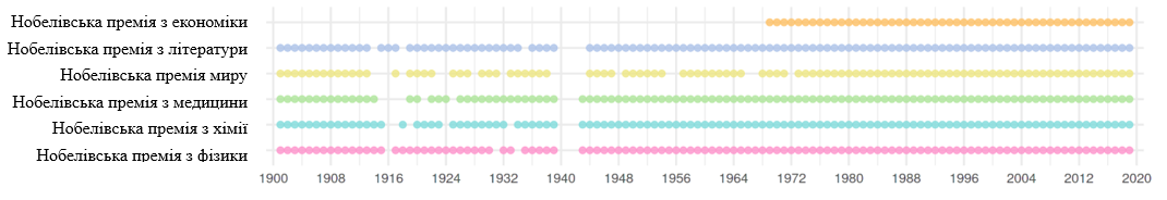 Рисунок 1. Регулярність присудження Нобелівської премії