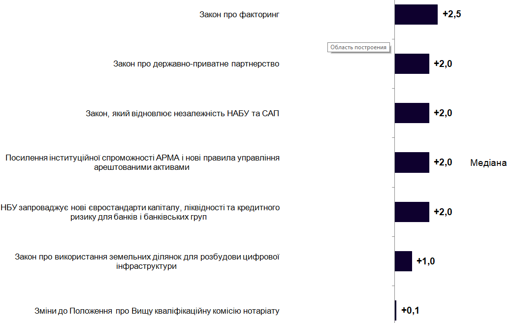 Головна подія випуску — прийняття закону про факторинг, який отримав від експертів Індексу оцінку +2,5 бали. Серед інших суттєвих реформ зміни в антикорупційній сфері: до випуску потрапив закон, який запускає процес реформування АРМА. Також в цей період Верховна Рада ухвалила новий закон, який скасовує чинність закону 4555-ІХ, який обмежив незалежність НАБУ та САП і став однією з головних антиреформ за останні 10 років.