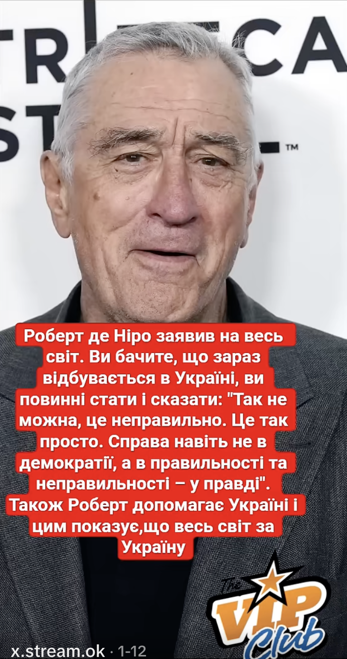 МАНІПУЛЯЦІЯ: Актор Роберт Де Ніро закликав підтримати Україну, тому що це правильно