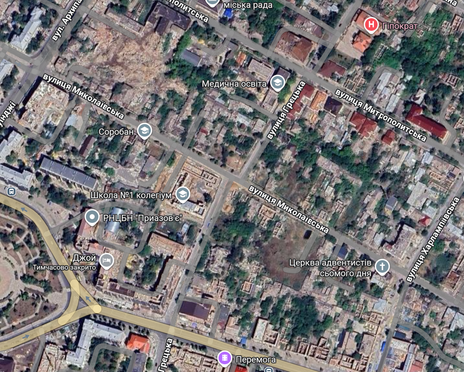 Фото зруйнованих будівель у Маріуполі станом на жовтень 2025 року. Джерело: Google