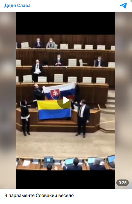 У мережі поширюють відео, нібито в парламенті Словаччини депутати облили водою прапор України.