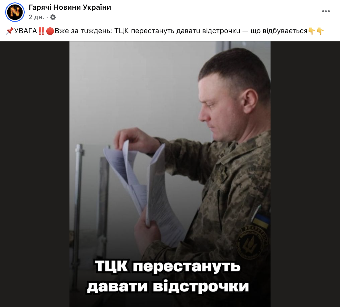 У дописі створюють хибне враження, ніби в Україні взагалі припинять давати відстрочки. Утім, у новині «Життя в деталях» про це не йдеться — там лише зазначають, що з листопада зміниться процедура оформлення документів.