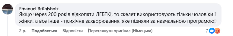У коментарі під дописом Брюнішольц підтримав позицію Гларнера, заявивши, що існують лише чоловічі та жіночі скелети, а решта (йдеться про трансгендерних людей — ред.) — це «психічна хвороба».