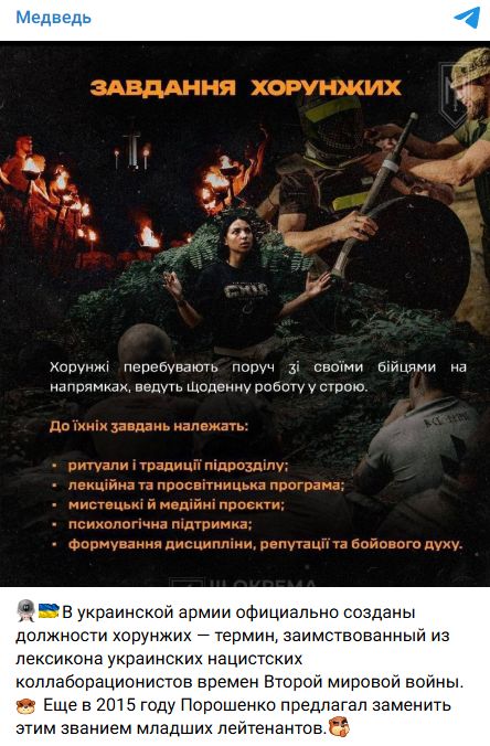 Це маніпуляція. Окремі підрозділи в українській армії справді мають хорунжу службу. Водночас офіційно в українському законодавстві немає такої посади.
