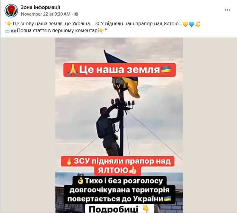 МАНІПУЛЯЦІЯ: ЗСУ підняли український прапор над Ялтою у листопаді 2025 року