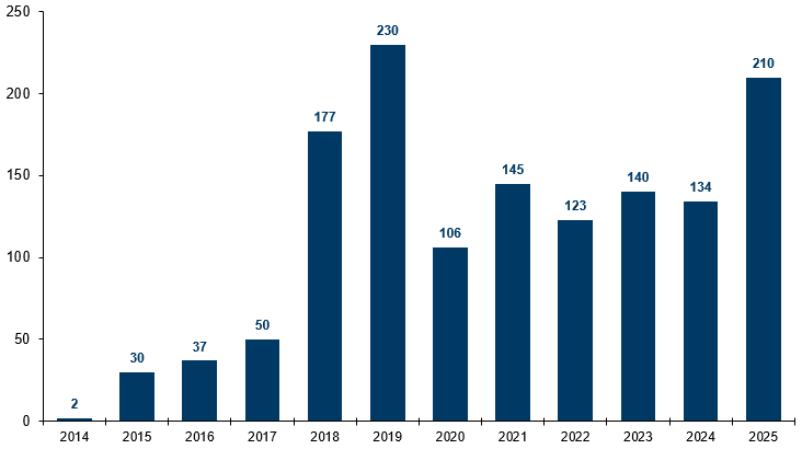 Міжмуніципальна співпраця в Україні розвивається нерівномірно, зберігає стійку позитивну динаміку навіть в умовах війни й поступово зміцнюється як інструмент організації публічних послуг на місцевому рівні. Після пікового періоду 2018–2019 років, коли було зафіксовано максимальну кількість нових договорів про співпрацю, темпи укладання угод про кооперацію суттєво знизилися під час повномасштабної війни: у 2022–2024 роках щорічно укладалося лише 120–145 договорів. На цьому тлі 2025 рік став переломним — протягом року було укладено близько 210 нових договорів, що є найвищим показником за весь період після початку повномасштабного вторгнення. Таке зростання відбулося попри воєнний стан і окупацію частини громад і, ймовірно, було підтримане змінами в регулюванні, які спростили процедури співробітництва: громадам дозволили продовжувати переговори навіть у разі виходу одного з учасників, поєднувати кілька форм співробітництва в одному договорі, скасували обов’язкове щорічне звітування, а моніторинг виконання договорів обмежили чіткими статистичними показниками, що зменшило адміністративне навантаження на органи місцевого самоврядування.