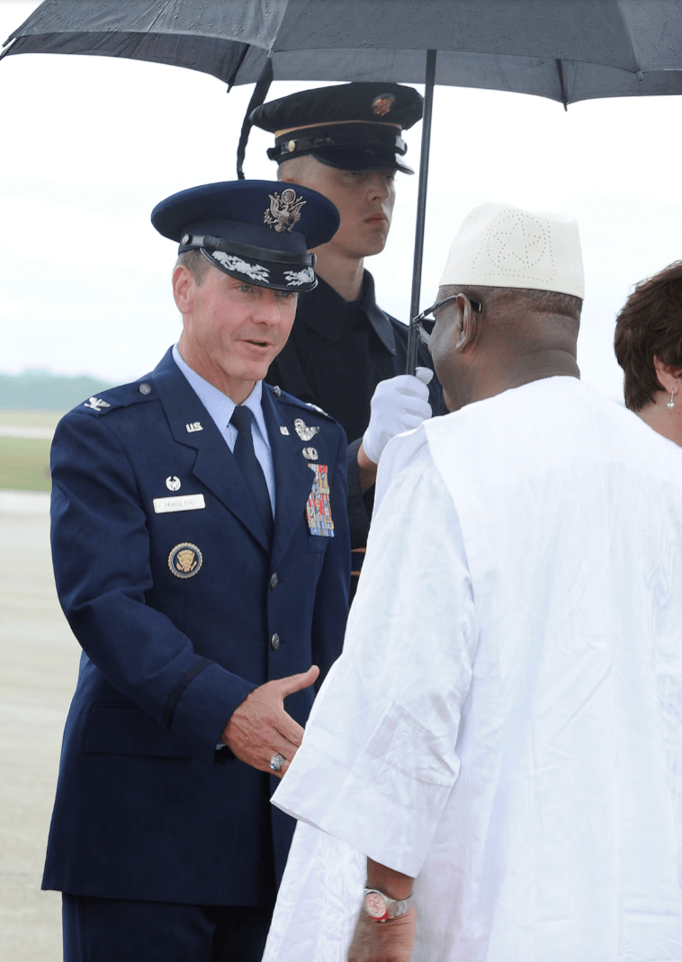 Фото із зустрічі експрезидента Гамбії Ях’я Джамме на базі Ендрюс 8 серпня 2014 року. Джерело: Joint Base Andrews