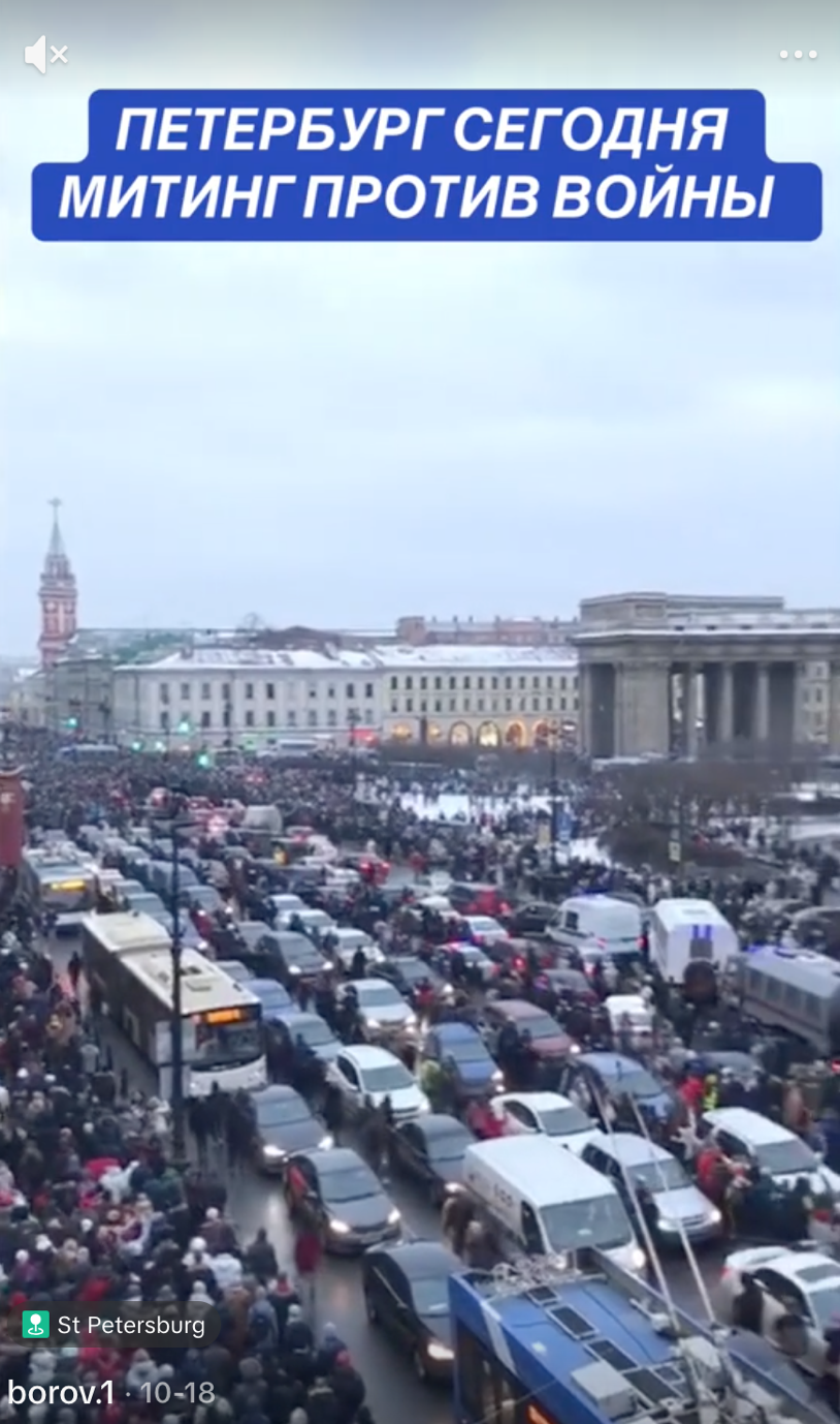 Користувачі соціальних мереж поширюють відео з масового антивоєнного мітингу, який нібито відбувся в російському санкт-петербурзі 18 жовтня 2025 року.