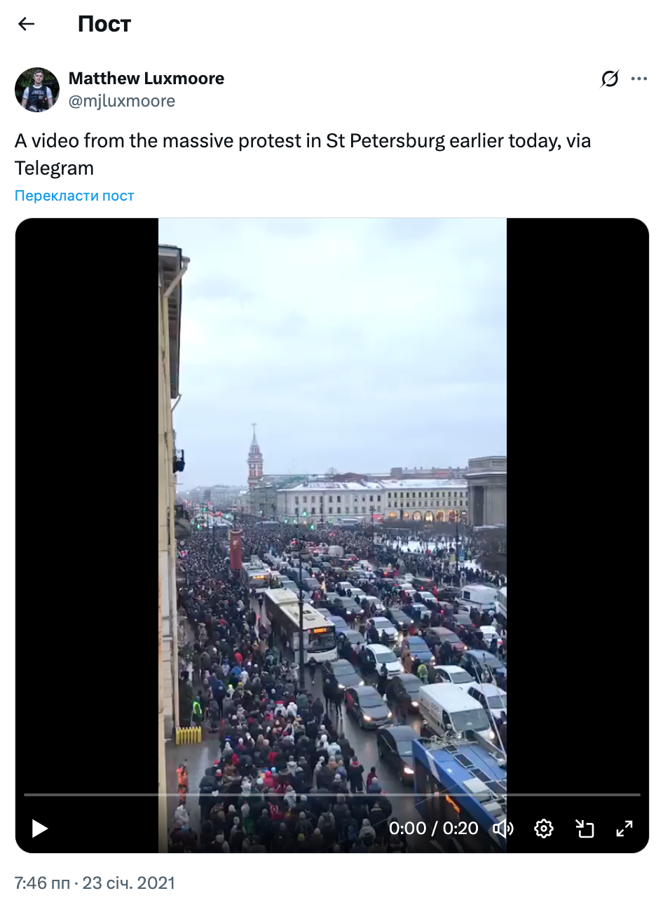 Скриншот допису Метью Люксмура, репортера The Wall Street Journal, за 23 січня 2021 року