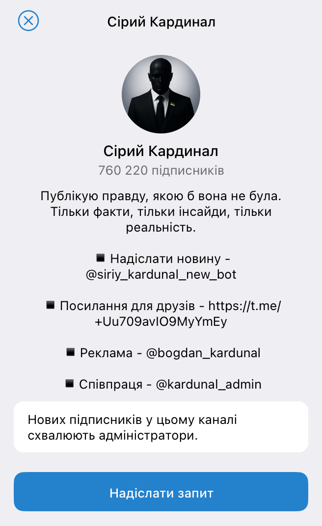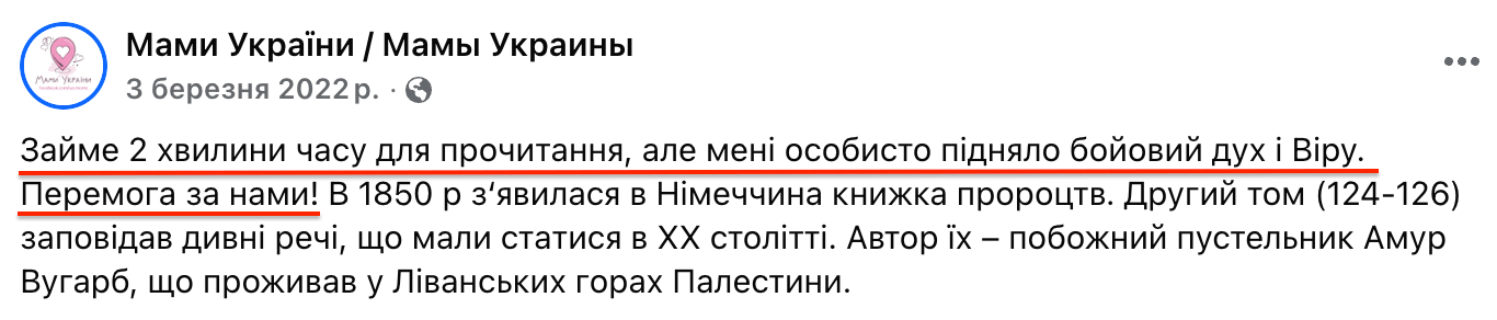 У коментарях до допису автори пропонують перейти за посиланням у телеграм-канал, аби довідатися подробиці стосовно пророцтва. За посиланням — закритий телеграм-канал «Сірий Кардинал» із понад 760 тисячами підписників. Раніше про цей канал писав, зокрема, Інститут масової інформації як про анонімне джерело поширення фейкових списків цілей російських обстрілів, який рекламувала мережа інших анонімних пабліків.