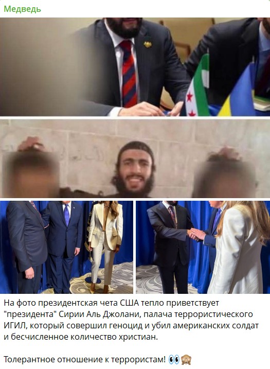 У мережі поширюють фото, на якому чоловік тримає відрізані людські голови. Автори допису вказують, що на фото нібито лідер Сирії Ахмед аш-Шараа, який раніше був учасником терористичного угрупування ІДІЛ.