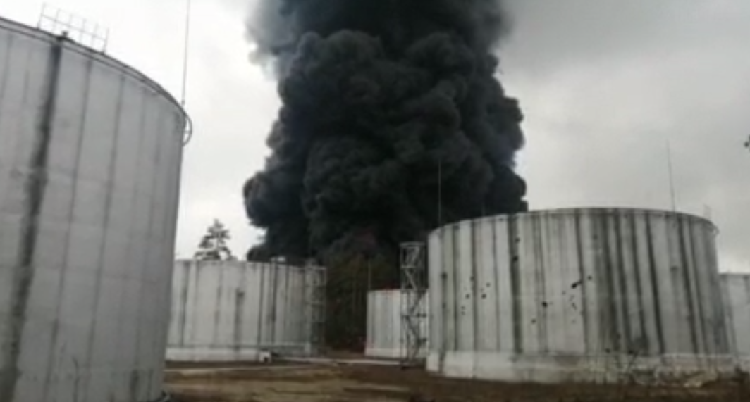 Кадр з відео пожежі на нафтобазі у Чернігові 3 березня 2022 року. Джерело: ДСНС України