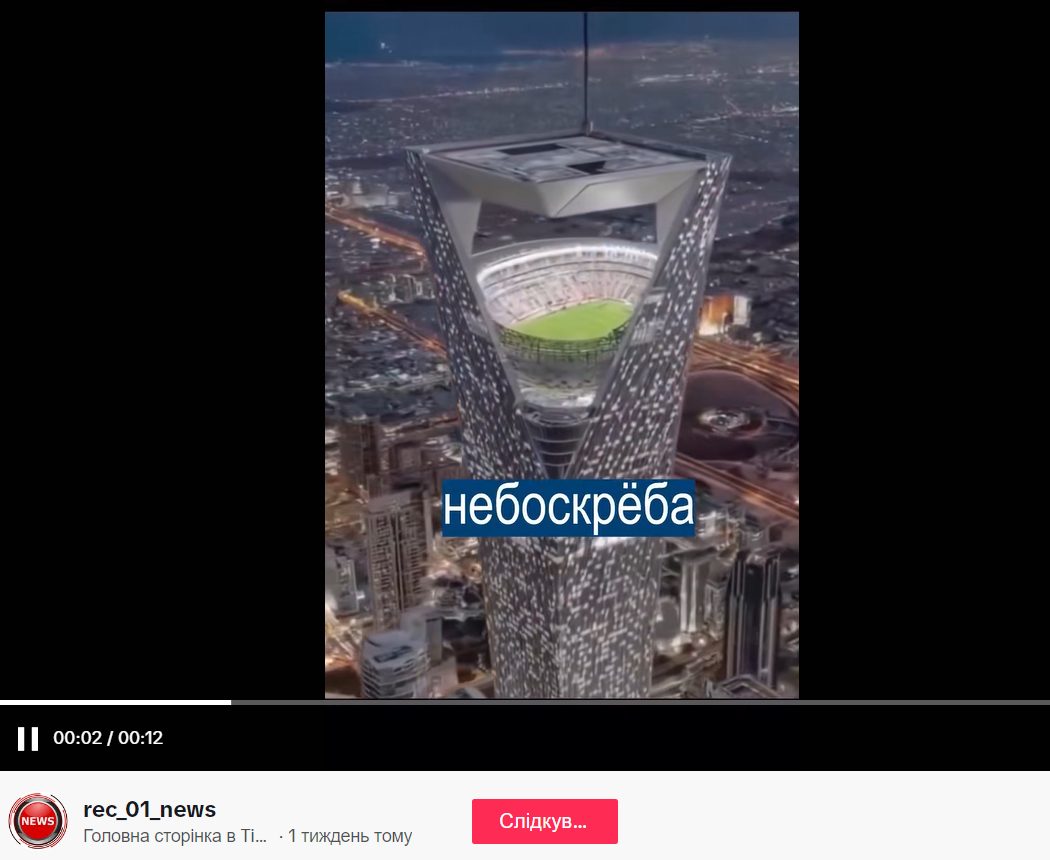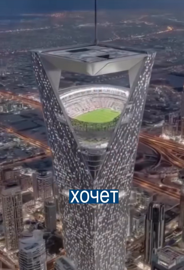 У мережі поширюють відео із нібито стадіоном на даху хмарочоса, який зводять у Саудівській Аравії (СА) до Чемпіонату світу з футболу, що відбудеться у 2034 році.