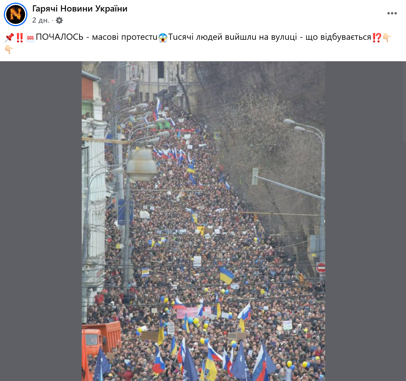Це неправда. Заголовок користувачів є клікбейтом. На фото з допису — «Марш миру» в москві у 2014 році.