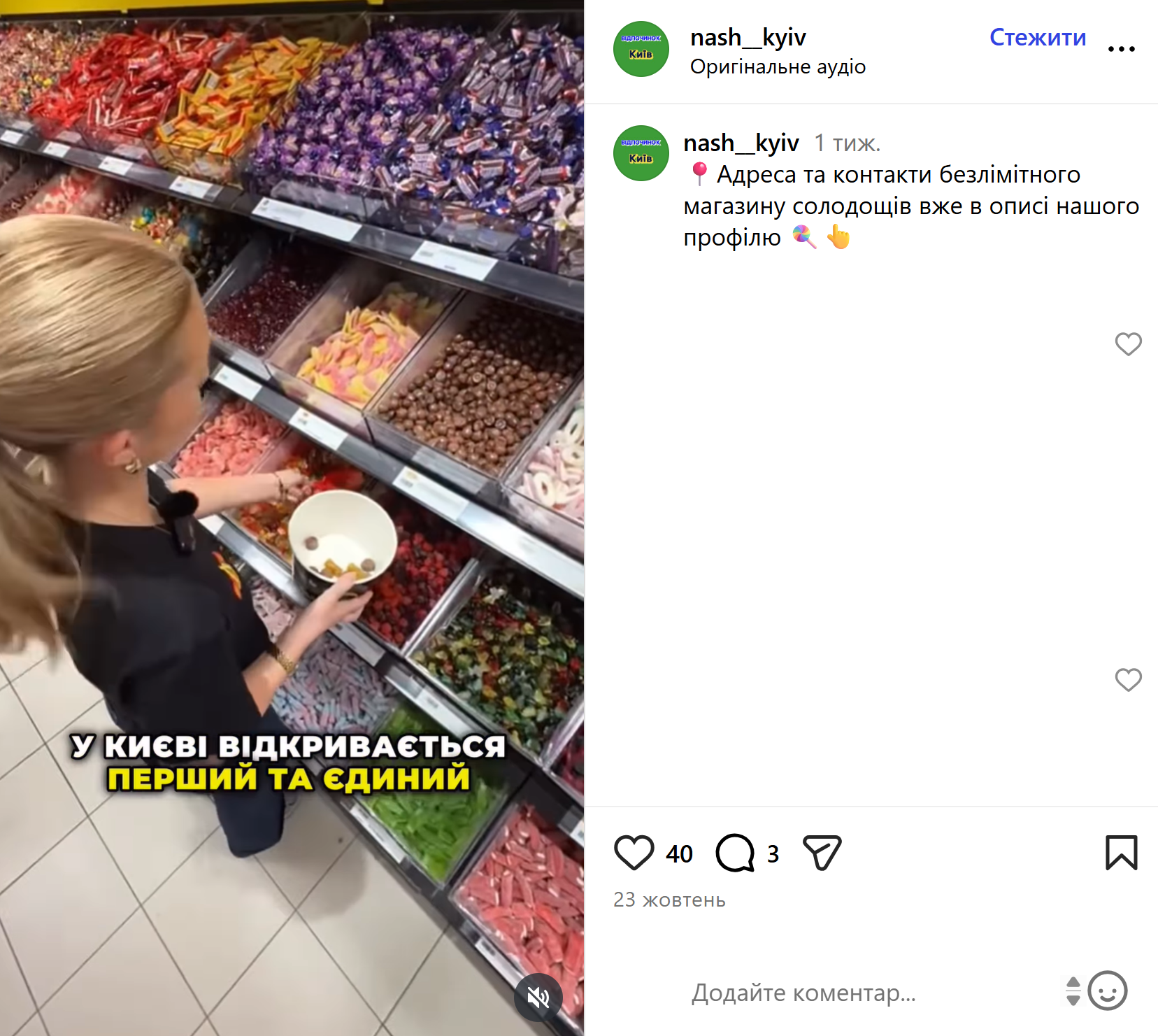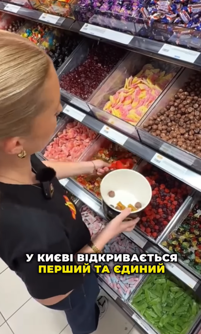 У мережі поширюють відео з нібито першого та єдиного магазину безлімітних солодощів у Києві та Львові, який готують до відкриття. У дописі додають, що покупці буцімто зможуть придбати відро за 100 гривень та набрати у нього будь-які з наявних цукерок.