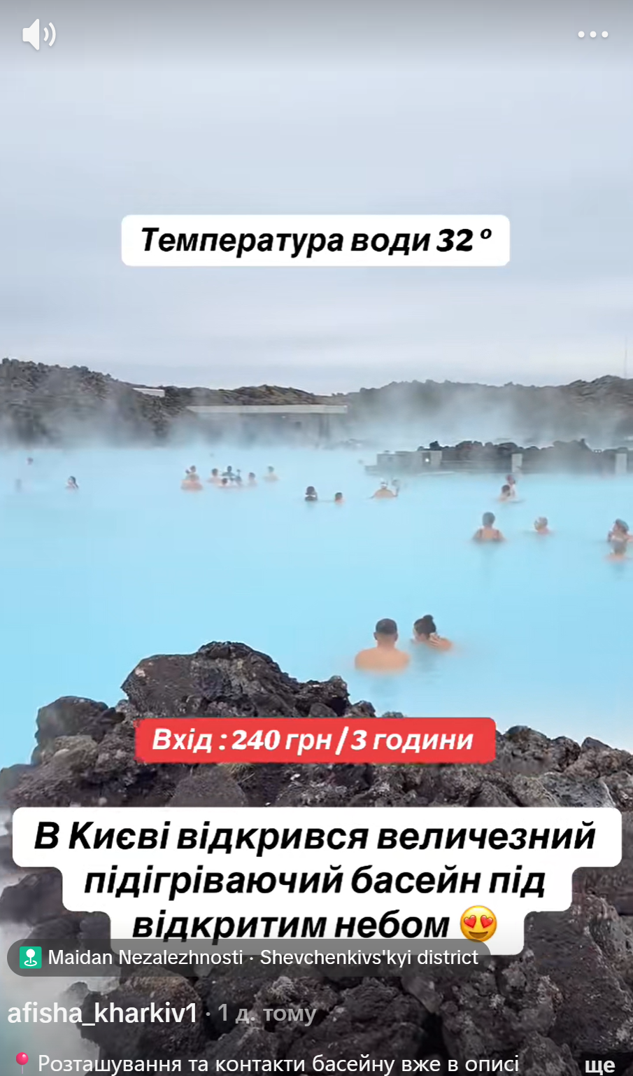 Це неправда. У Києві немає такого басейна, запис зробили в Ісландії.